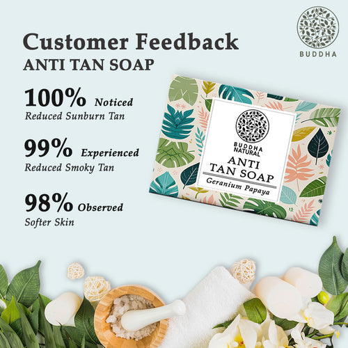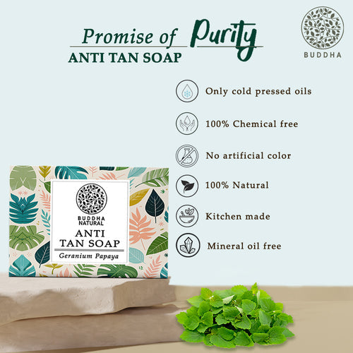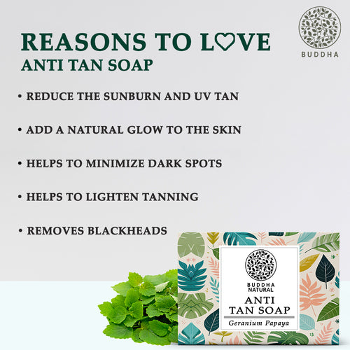 - Buddha Natural Anti Tan Body Soap is 100% natural and certified by the Ministry of Ayush. Buddha Natural Anti Tan soap is the best tan removal soap for the body.