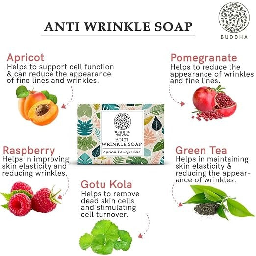 - Buddha Natural Anti Wrinkle Soap is a natural, harsh alkalies free, and harmful chemicals-free soap that helps to reduce wrinkles and fine lines of the skin.