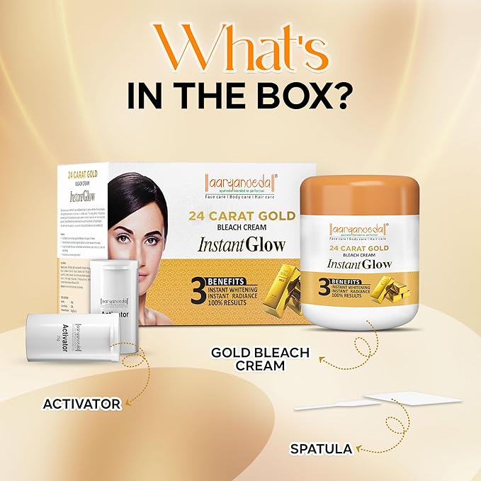- Aryanveda 24-carat Gold Bleach Lightens Up The Facial Hair To Blend It With Your Natural Skin Tone While Enhancing The Texture Of Your Skin.