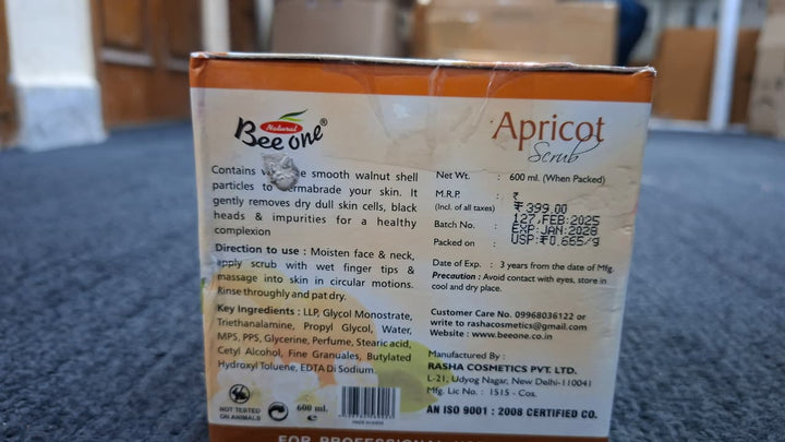Description: Beeone Face & Body Apricot Scrub 600 Ml Contains very fine smooth walnut shell particles to dermabrade your skin It gently removes dry dull skin cells, black heads & impurities...