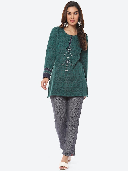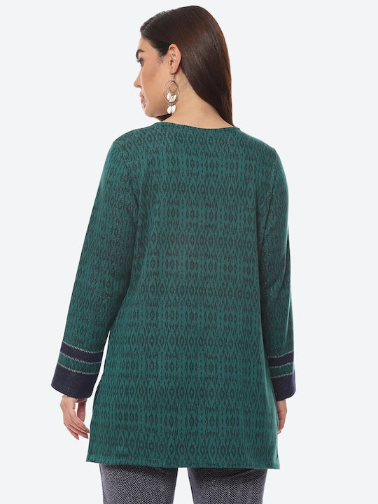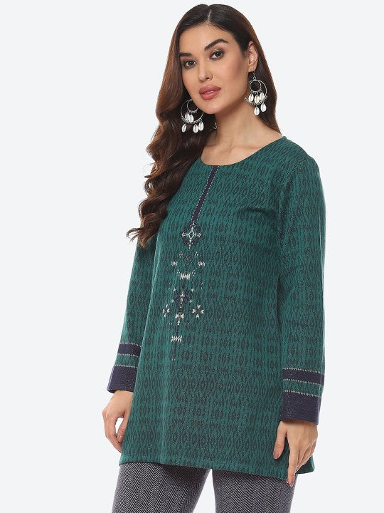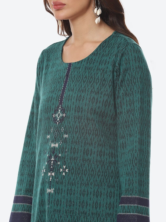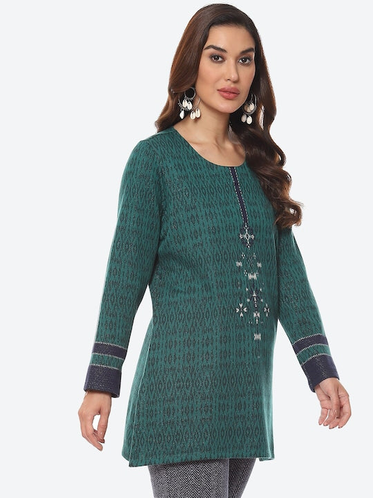 Biba Green Ethnic Motifs Printed Jacquard Kurti