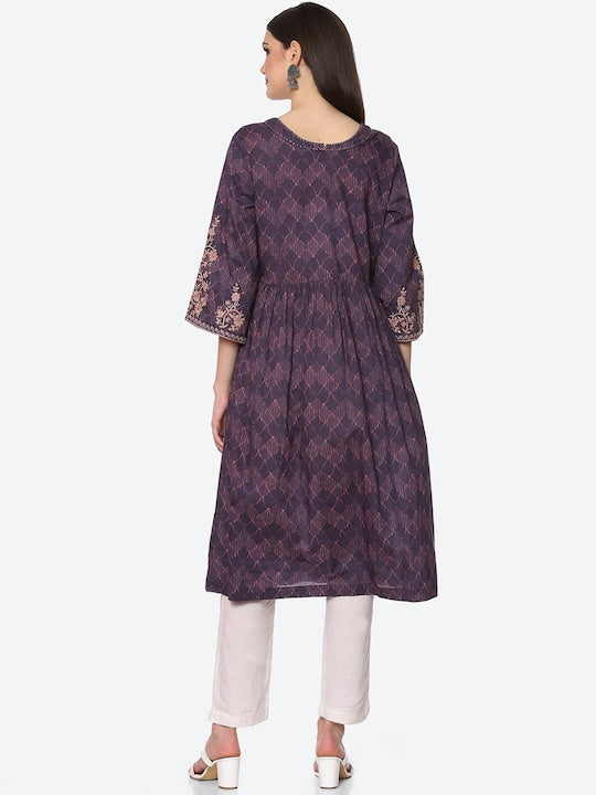 Biba Women Blue & Pink Floral Embroidered Kurta