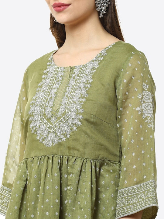 Biba Women Green Ethnic Motifs Printed Flared Sleeves Thread Work Anarkali Kurta