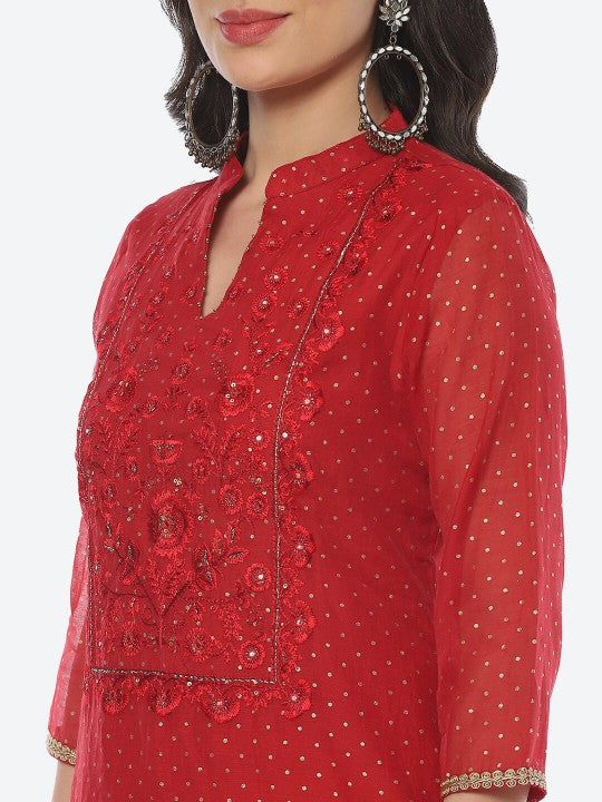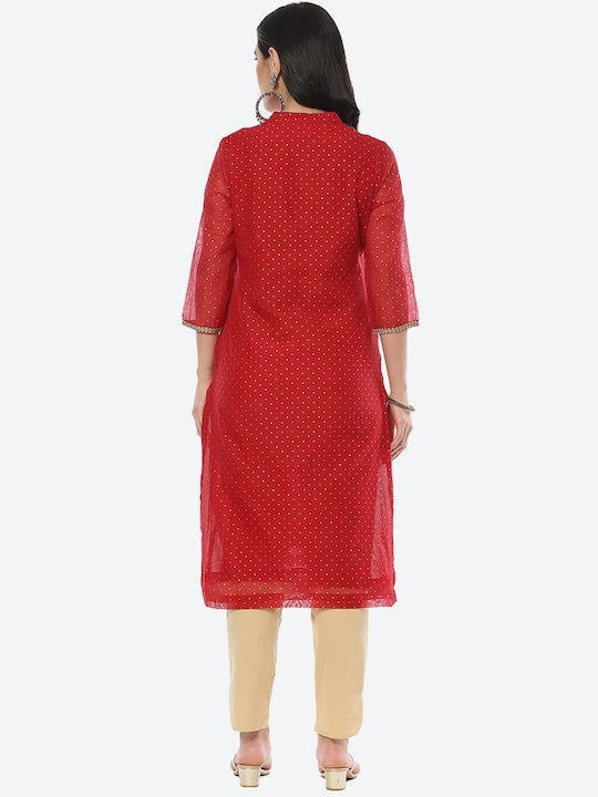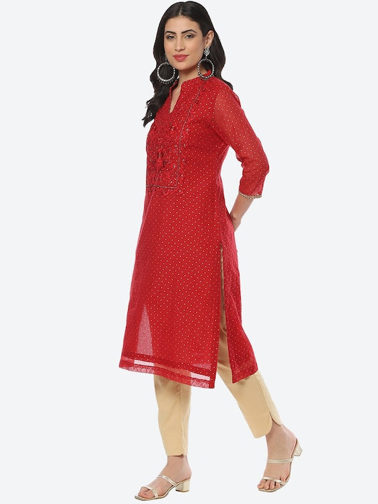 Biba Women Polka Dots Printed Thread Work Kurta - Red