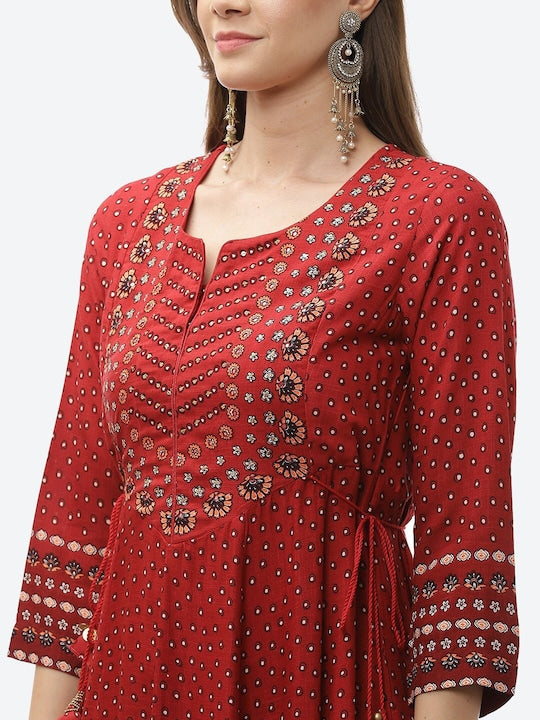 Biba Women Red Ethnic Motifs Embroidered Mirror Work Anarkali Kurta