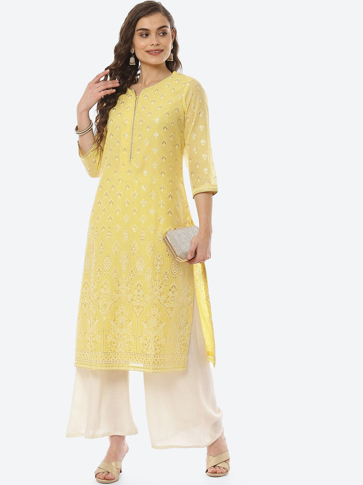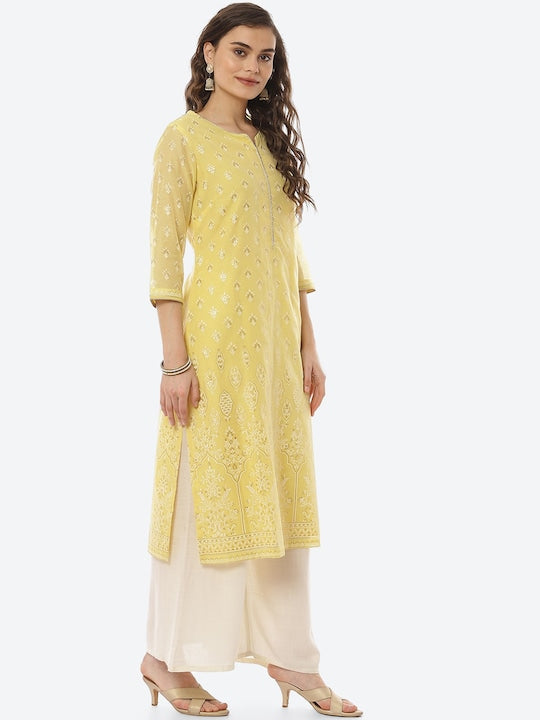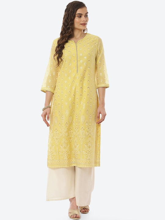 Biba Yellow Ethnic Motifs Printed Straight Kurta