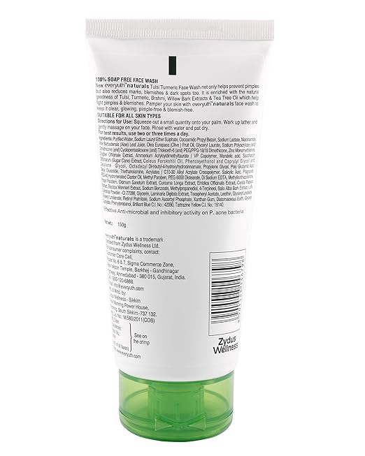 - Everyuth Naturals Tulsi Turmeric Face Wash helps reduce marks, blemishes and dark spots.