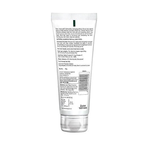 - Everyuth Naturals Walnut Scrub made with walnut shell helps in exfoliating dead skin cells.