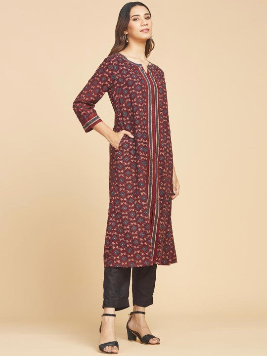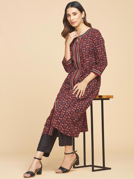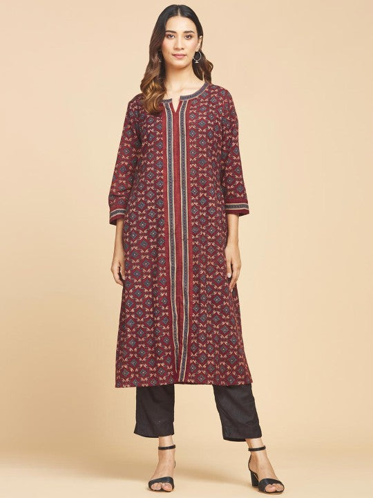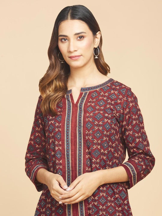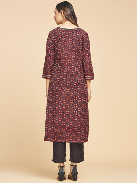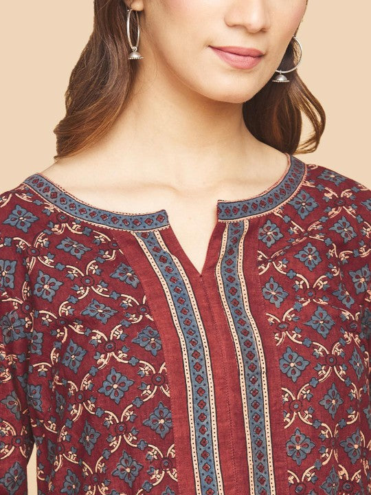 Fabindia Floral Round Neck A-Line Regular Kurta