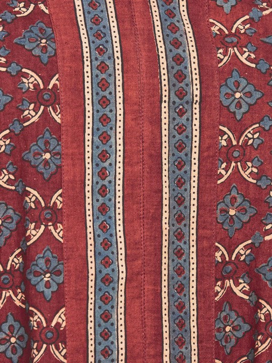 Product Details: Colour: Red Floral woven design Round neck Three-quarter, regular sleeves A-line shape with regular style Calf length with straight hem Machine weave regular cotton Material & Care: Cotton Hand...