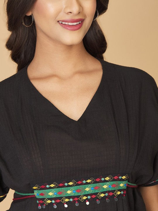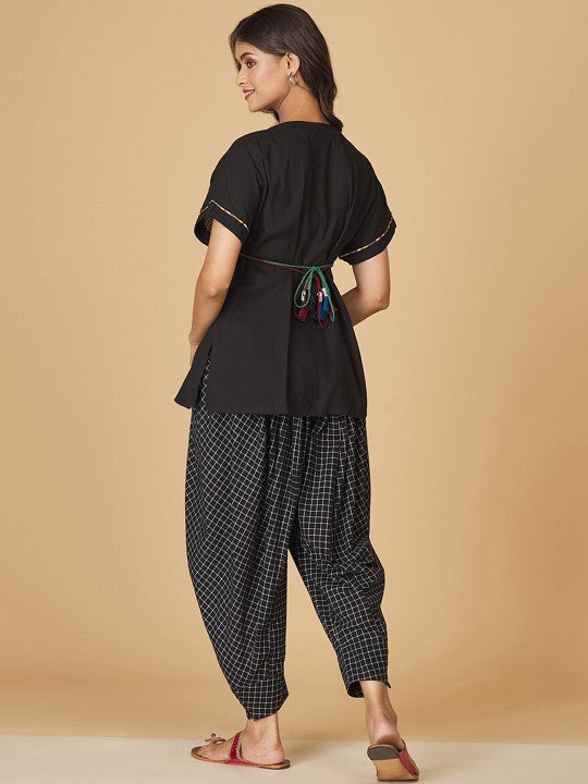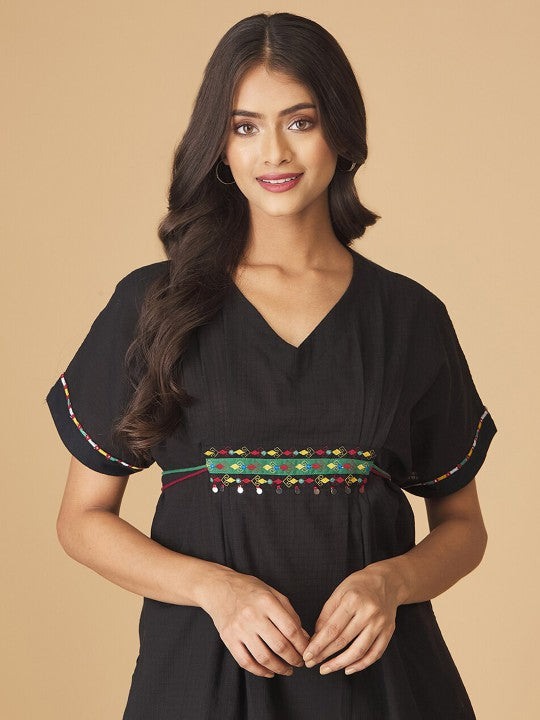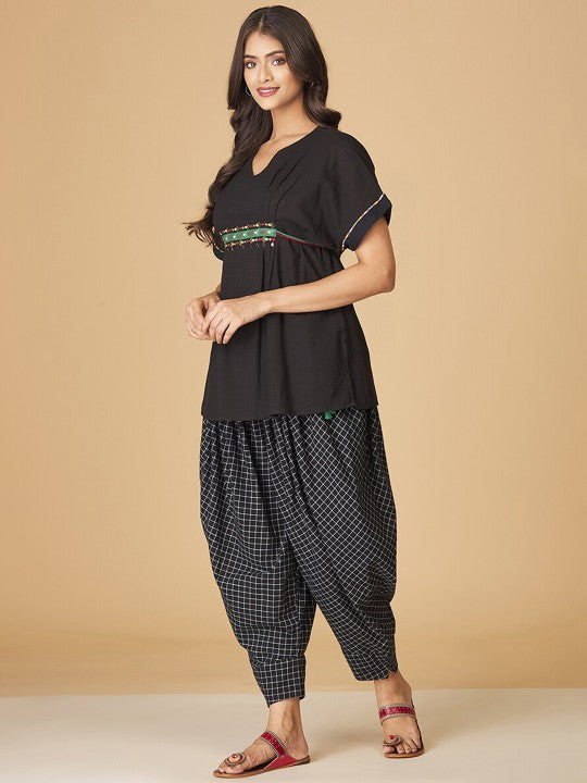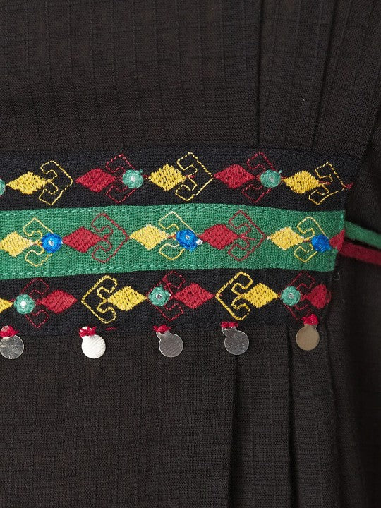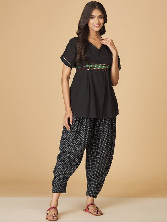 Fabindia Women Black Embroidered Regular Thread Work Pure Cotton Kurti with Salwar