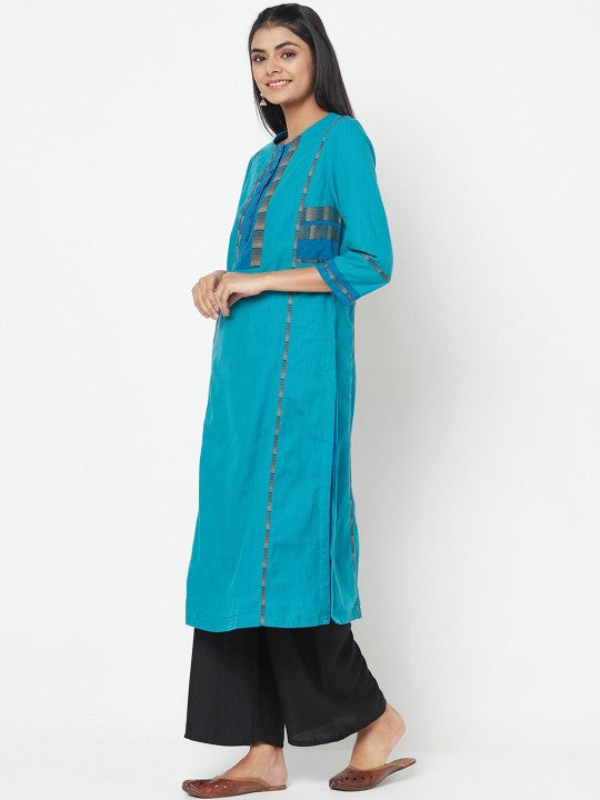 Fabindia Women Blue Geometric Yoke Design Cotton Kurta