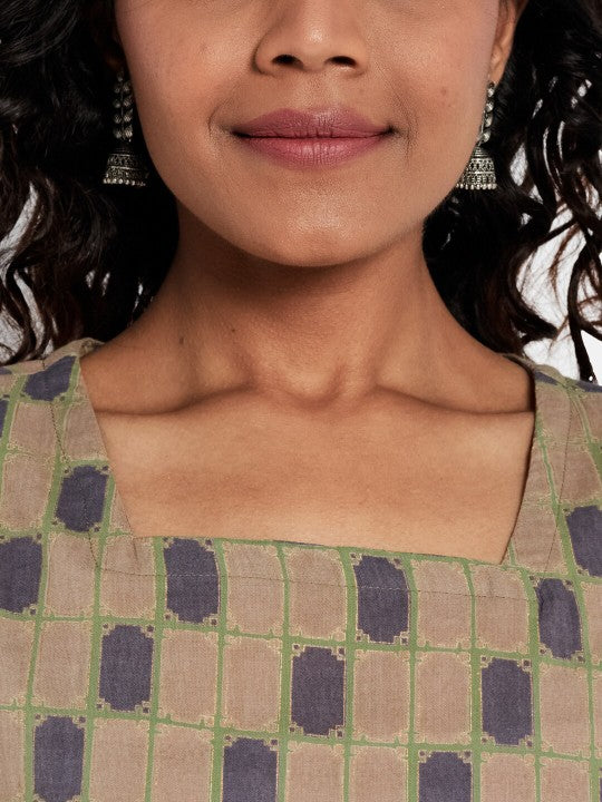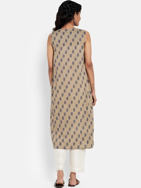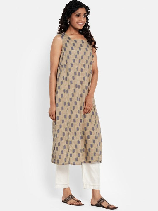 Fabindia Women Brown Ethnic Motifs Printed Cotton Kurta