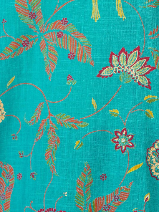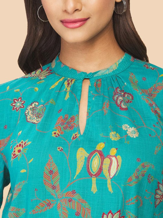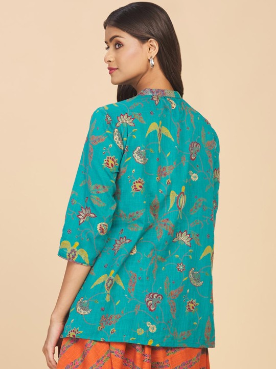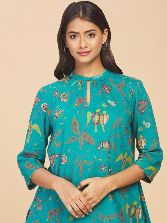 Fabindia Women Floral Printed Pure Cotton Kurti - Green