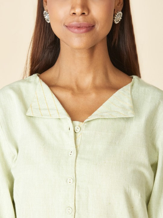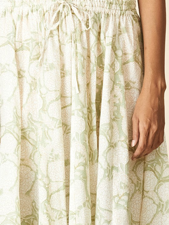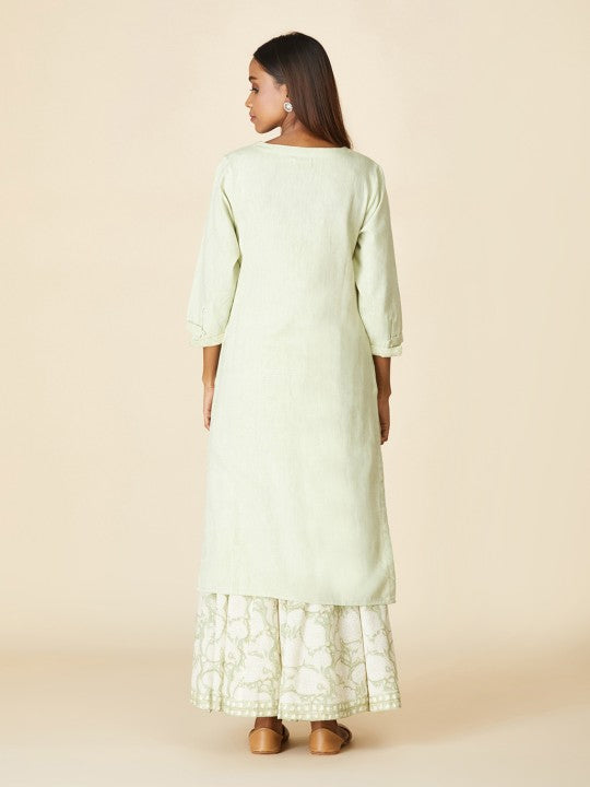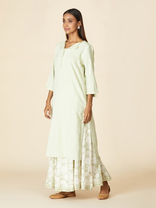 Fabindia Women Green Solid Pure Cotton Kurta with Skirt