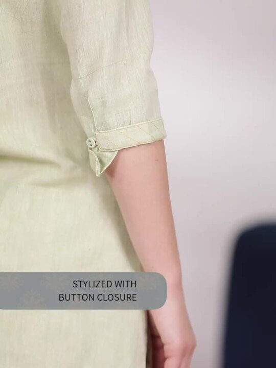 Product Details: Green solid Kurta with Skirt Kurta design: Solid Straight shape Regular style Lapel collar, three-quarter regular sleeves 2 pockets Calf length with straight hem Pure cotton machine weave fabric...
