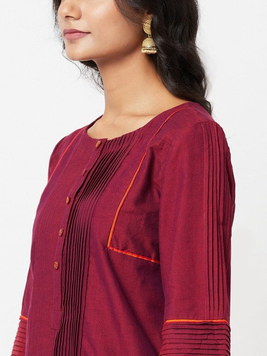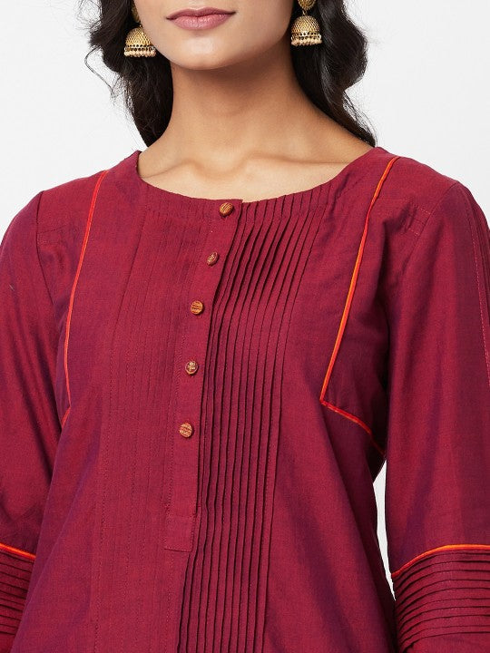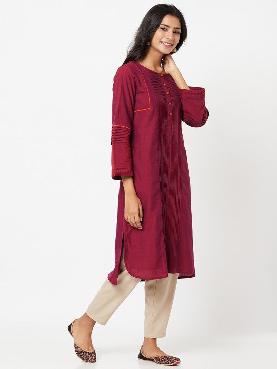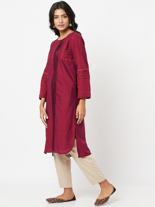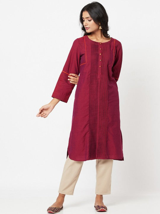Fabindia Women Magenta & Orange Solid Cotton A-line Kurta