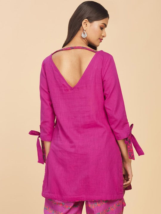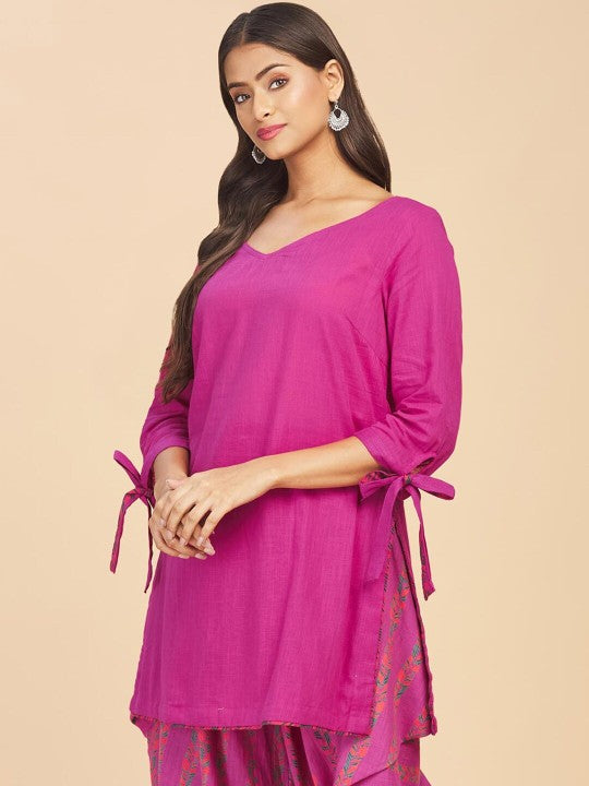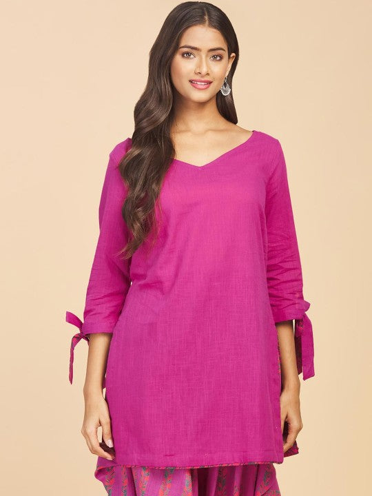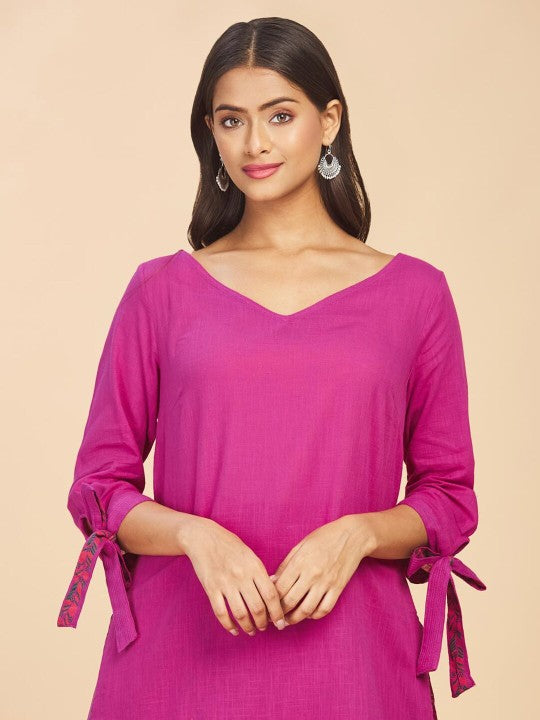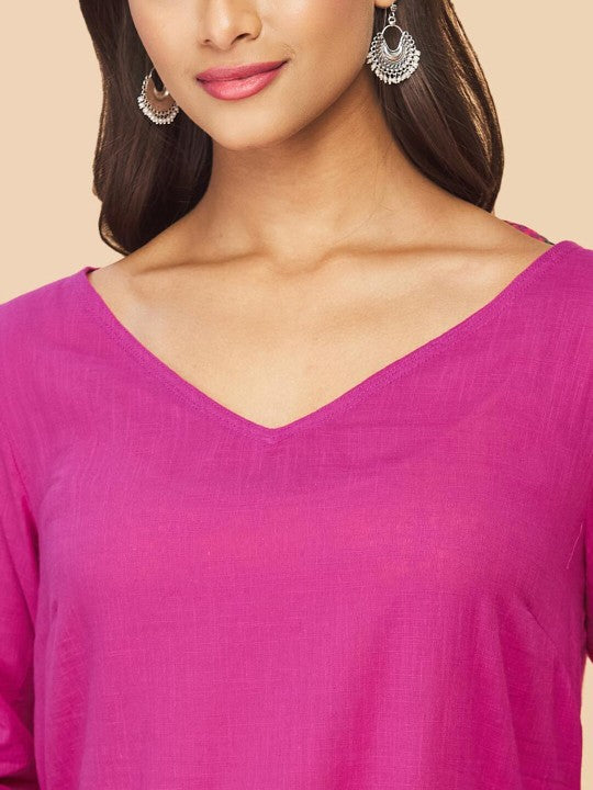 Fabindia Women Magenta V-Neck Pure Cotton Kurti