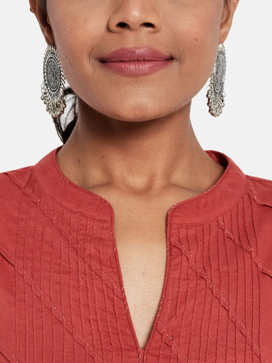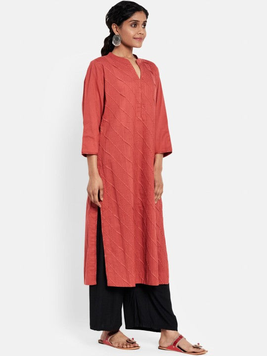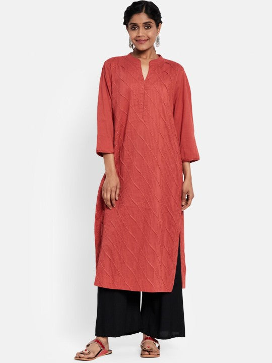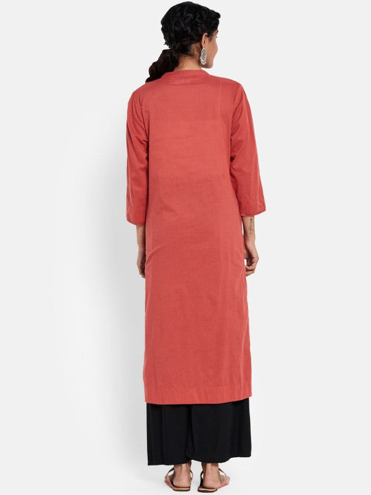 Product Details: Colour: Maroon Solid Mandarin collar Three-quarter, regular sleeves Straight shape with regular style Calf length with straight hem Knitted and woven regular cotton Material & Care: Cotton Hand Wash...