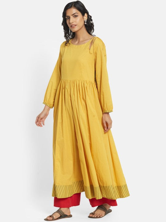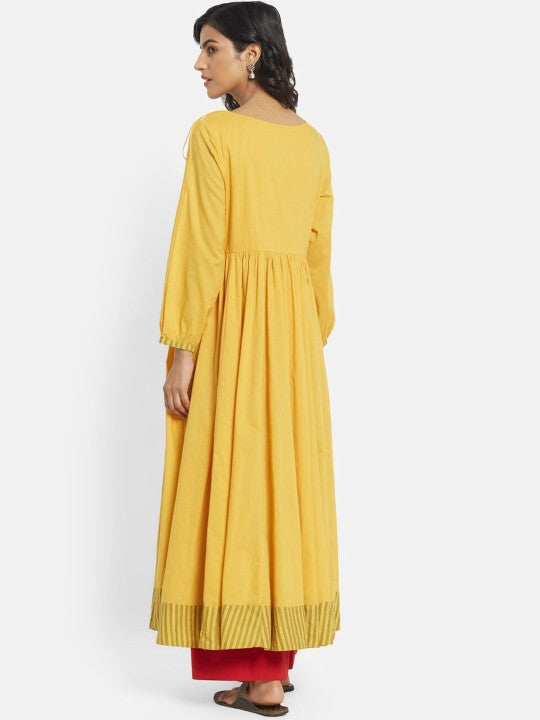 Fabindia Women Mustard Yellow Cotton Anarkali Kurta