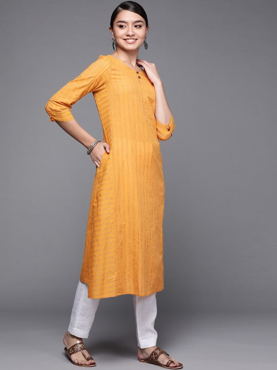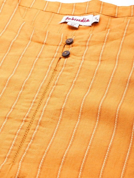 Fabindia Women Mustard Yellow Pure Cotton Striped Kurta