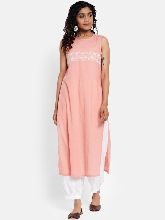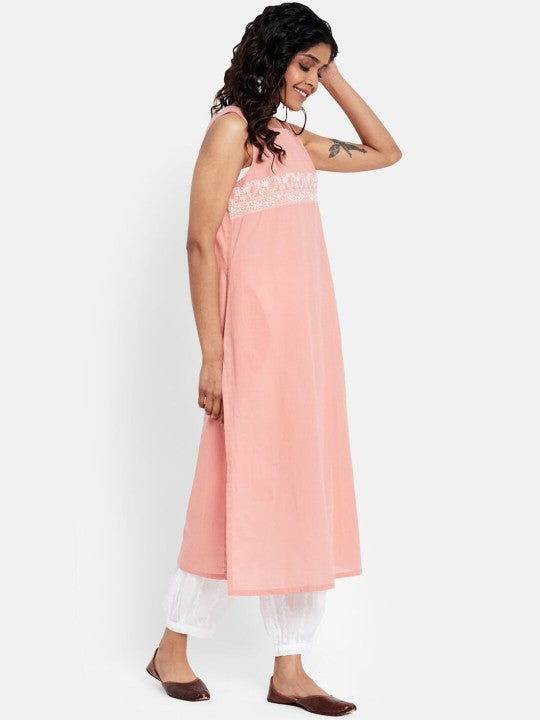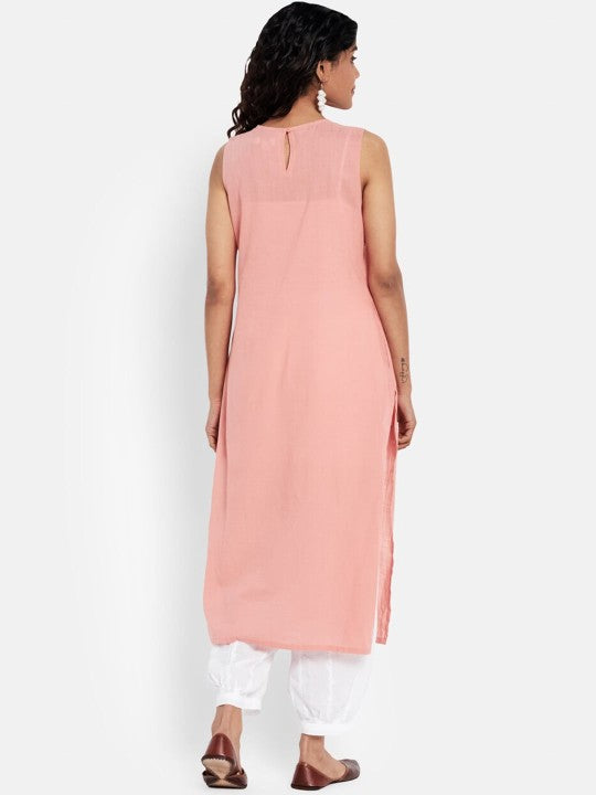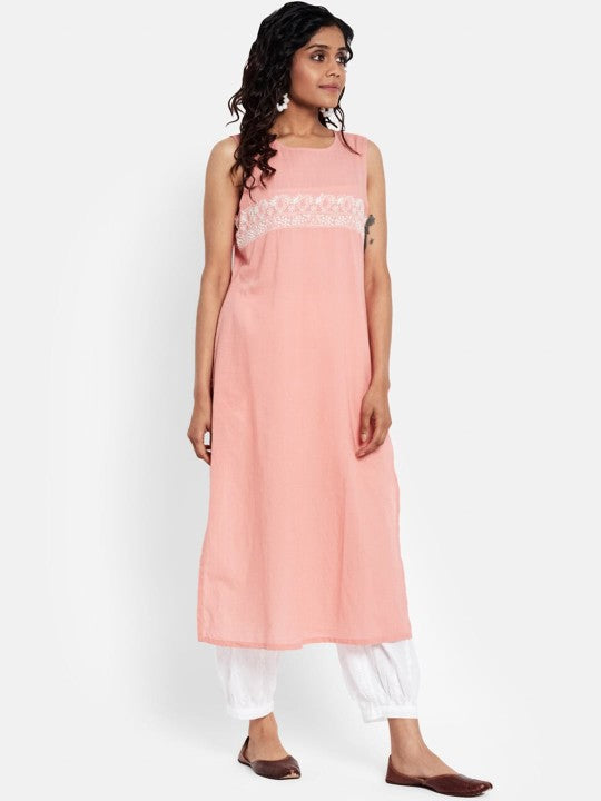 Fabindia Women Peach-Coloured Chikankari Kurta