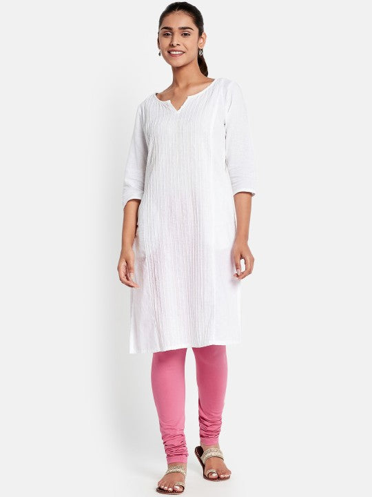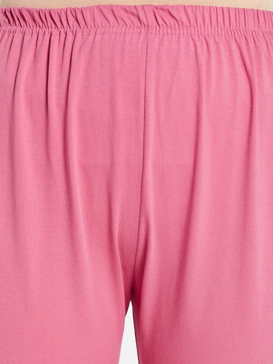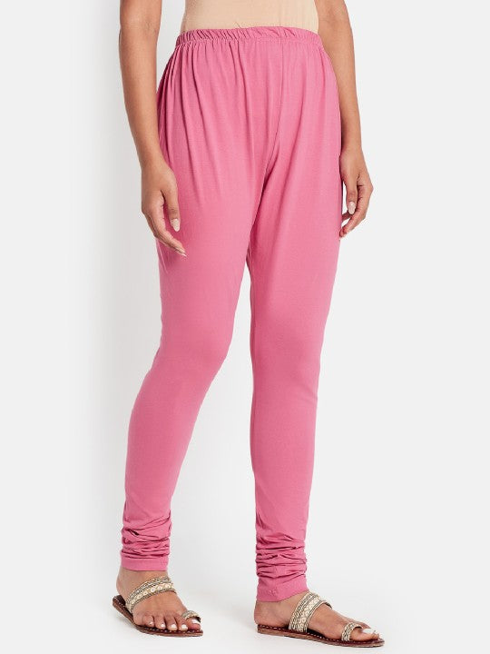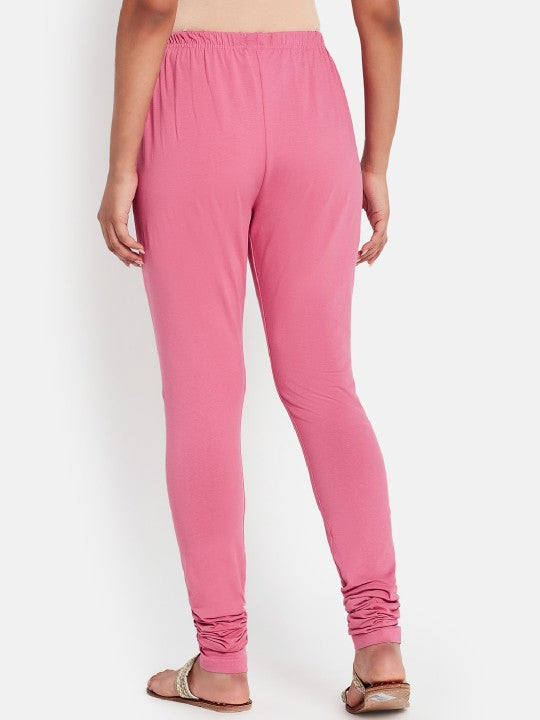 - Cotton Blend Regular Fit Pink Elastic Churidar