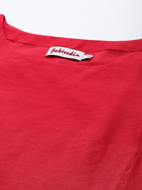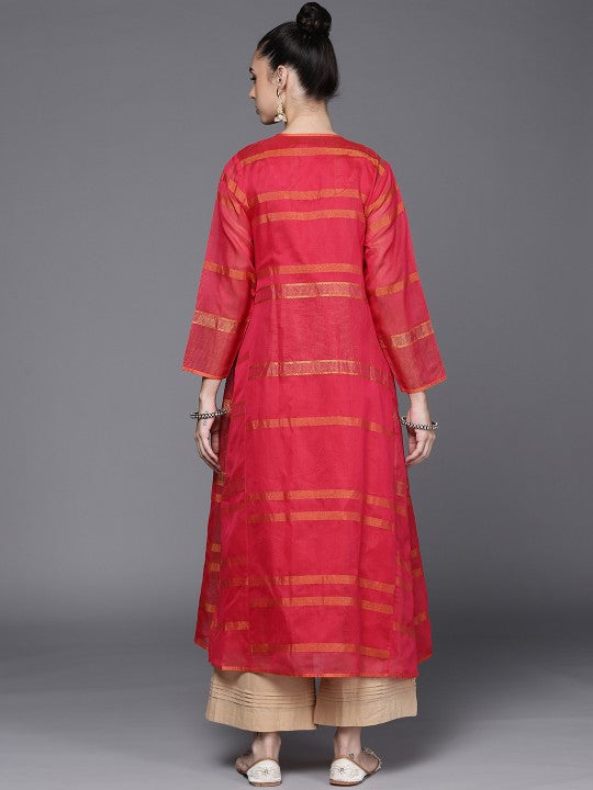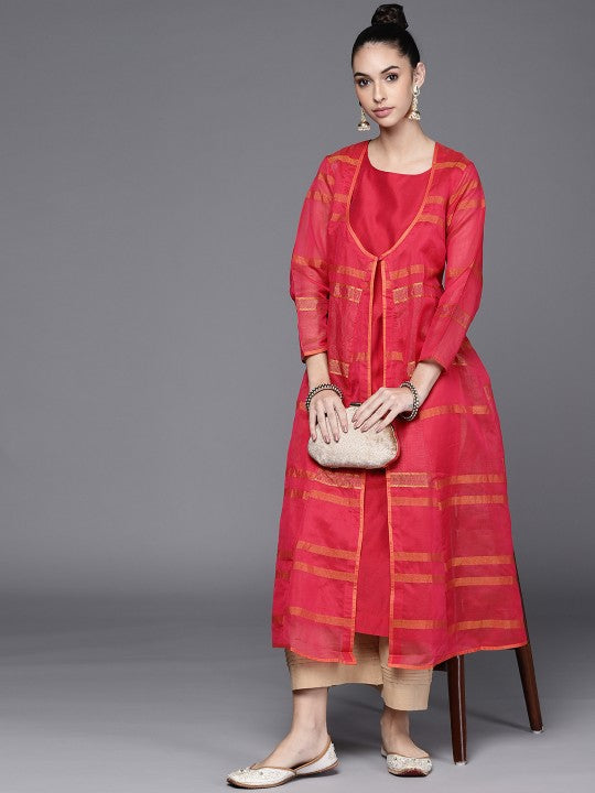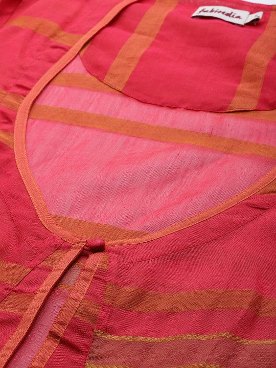 Fabindia Women Pink & Orange Striped Layered A-Line Kurta