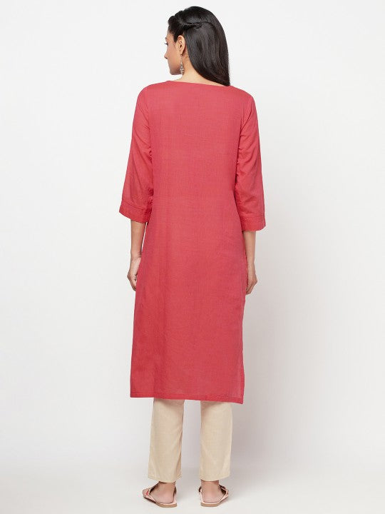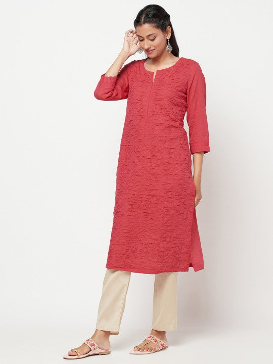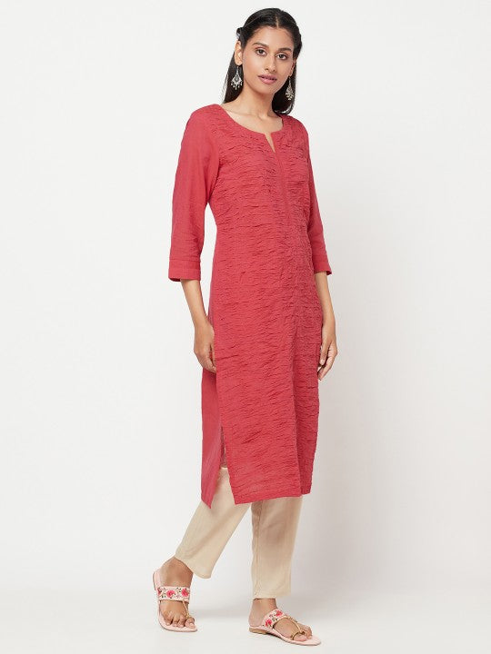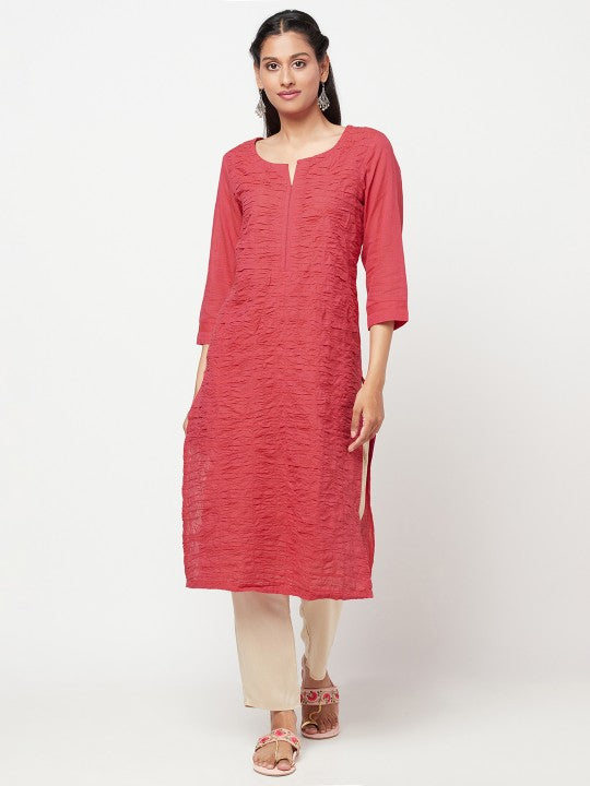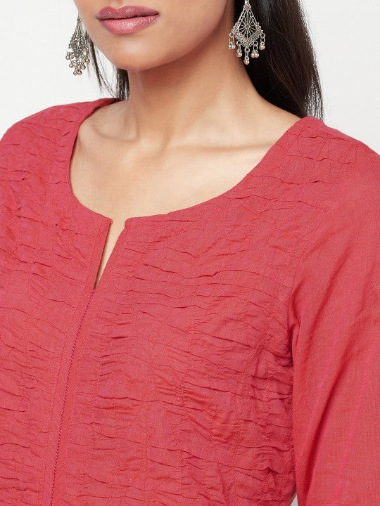 Fabindia Women Pink Pure Cotton Ruched Straight Kurta