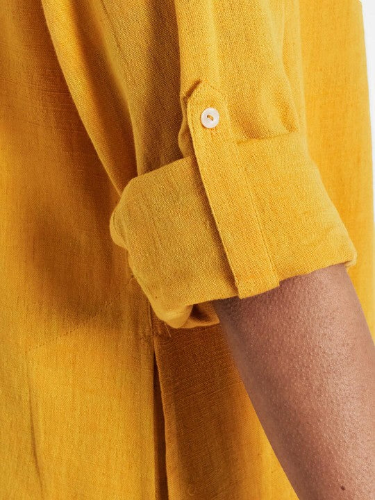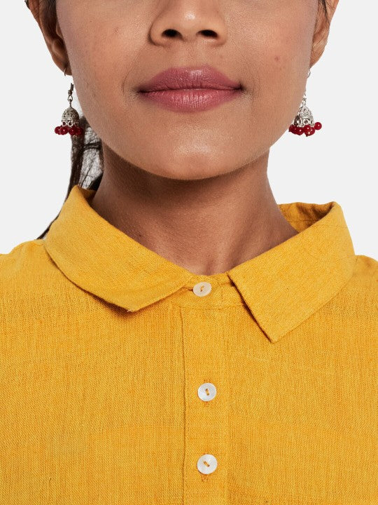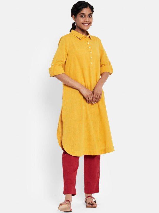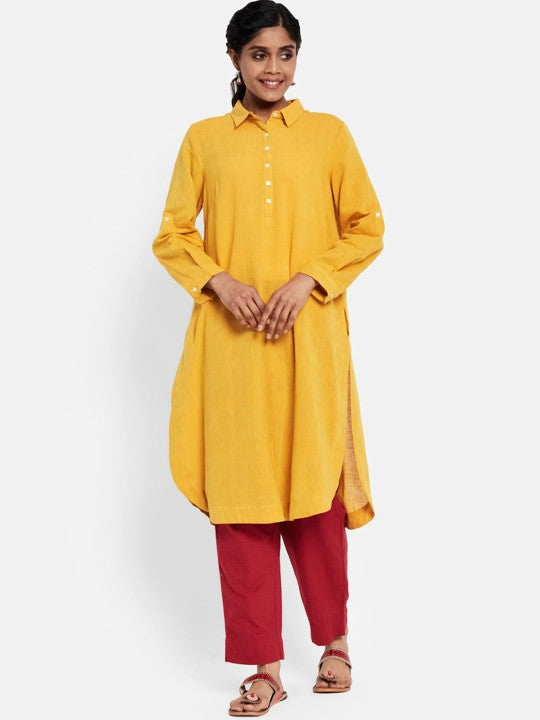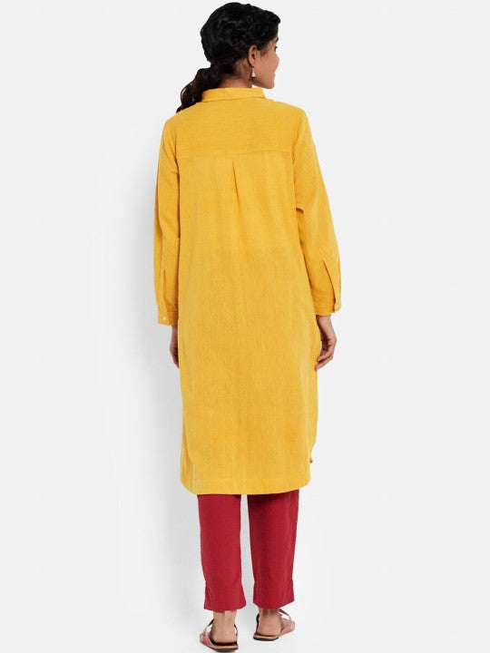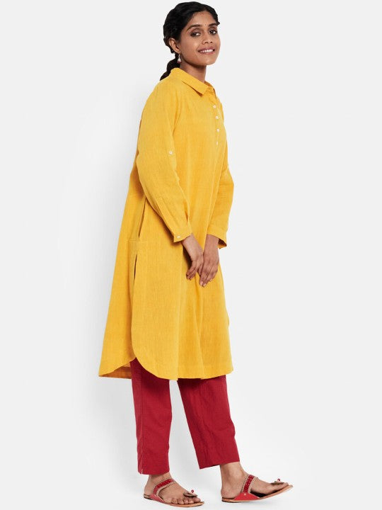 Product Details: Colour: Yellow Solid Shirt collar Long, regular sleeves Pathani shape with regular style Knee length with curved hem Knitted regular cotton Material & Care: Cotton Hand Wash Separately In...