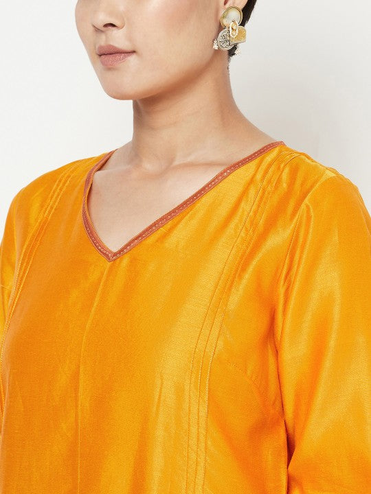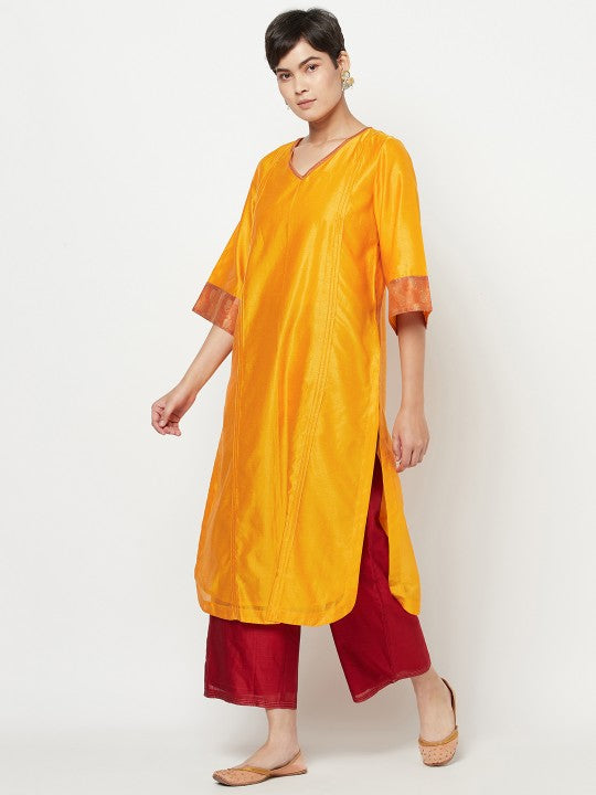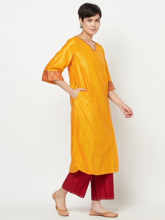 Fabindia Women Yellow Solid Flared Sleeves Kurta