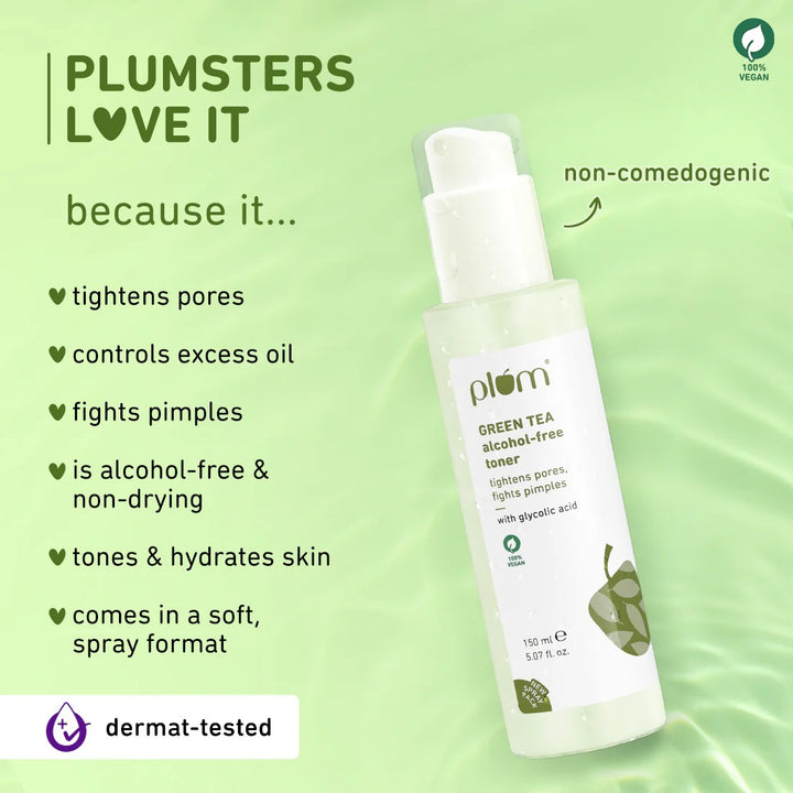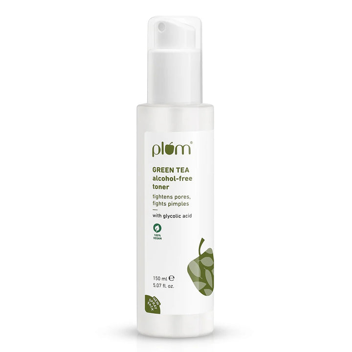 - Our Plum Green Tea Toner exists exactly on that line. this alcohol-free toner is enriched with green tea extracts that combat acne, and glycolic acid that gently exfoliates and removes dead skin cells. After all, alcohol belongs in better places than your toner! Plus, it now comes in a mini pack, so you can tone it up whenever and wherever!