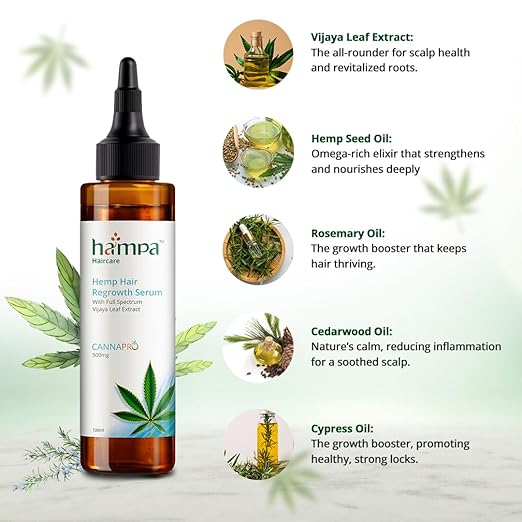 - Hampa Hemp Hair Regrowth Serum is 100% Natural and Ayurvedic. No Synthetic actives like Redensyl, Minoxidyl, Anagain. Contains Hemp, Rosemary, Fenugreek and 12 Ayurvedic Herbs. Works naturally as a great hair serum for hair growth