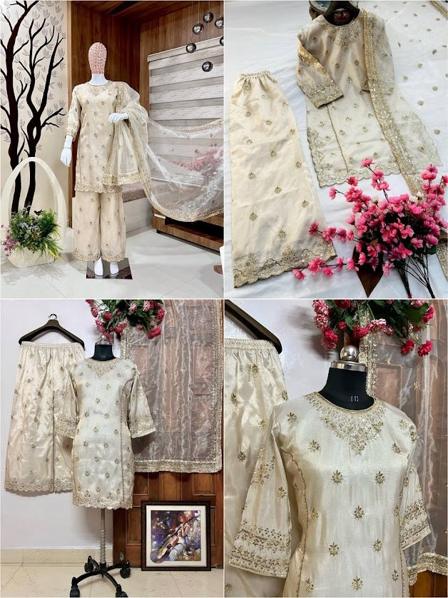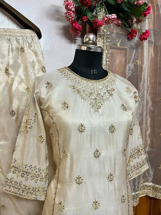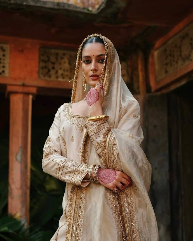Ivory Gold Embroidered Sharara Suit with Dupatta Bridal Wear