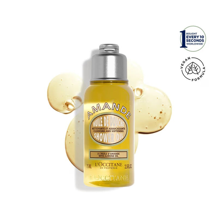 - The delicate, frothy foam surrounds your skin with an infusion of sweet almond oil, softening and comforting as you cleanse. On contact with water, this shower oil transforms into a sheer milky lotion that gently cleanses the body.
