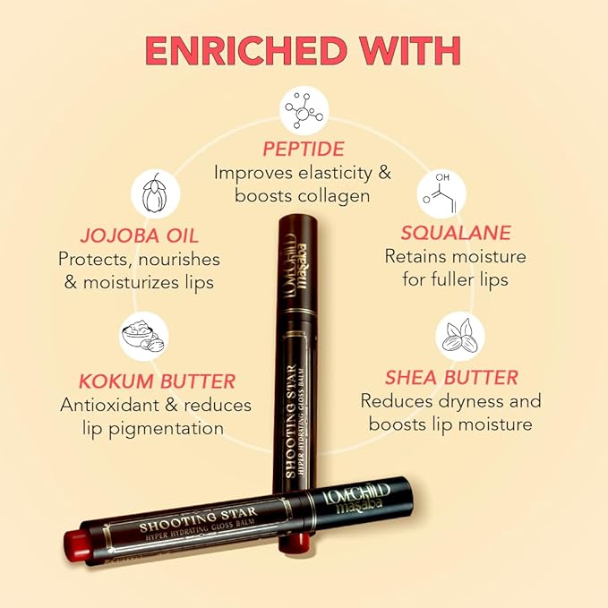 - Hydrating Lip Gloss Balm: Enriched with Shea Butter and Jojoba Oil, this hydrating lip gloss balm deeply nourishes and moisturizes your lips.
