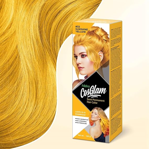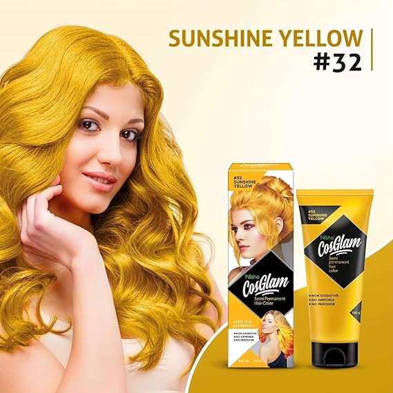 Nisha Cosglam Semi Permanent Hair Color 32 Sushine Yellow - 120 gms