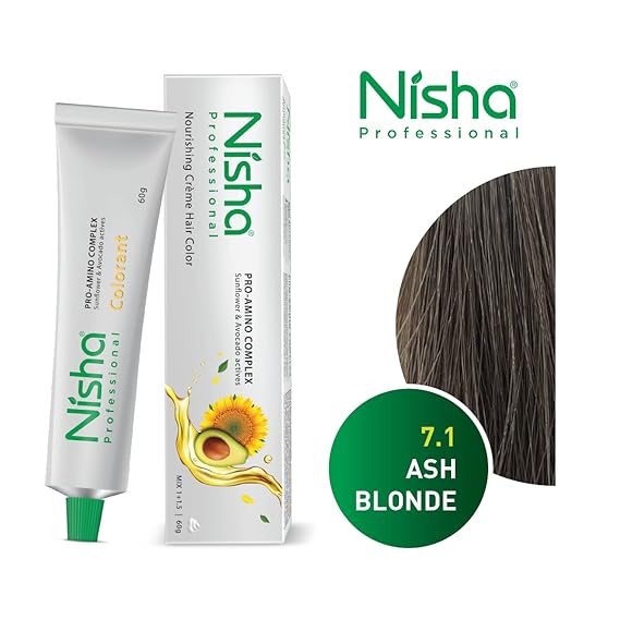 Nisha Professional Permanent Hair Colour Ash Blonde 7.1 - 60 gms