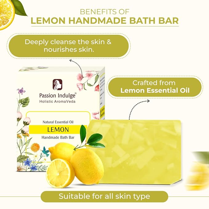 Passion Indulge Handmade Soap Natural Lemon Bath Bar - 100 gms | Pack of 3
