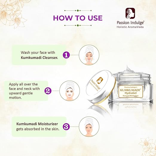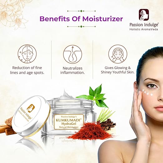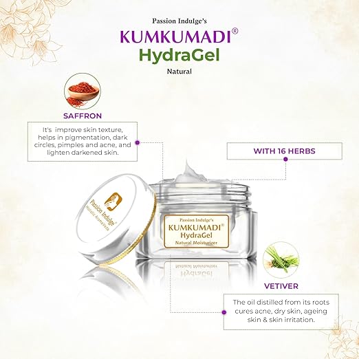 - Kumkumadi moisturizer hydragel - passion indulge kumkumadi hydragel is unique water based moisturizer, made with goodness of kumkumadi & vetiver essential oil