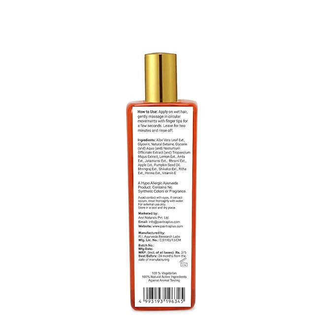 Description: Pavitra+Hair loss control shampoo formulated to repairs damaged hair & control hair fall. It helps in strengthening & provide nourishment to hair. Formulated with pure natural ingredients like, Amla, Brahmi,...