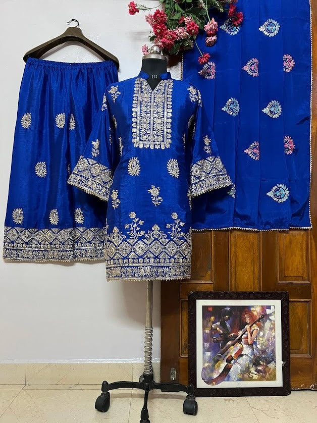 Plazzo : Heavy Chinon Silk With sequence Embroidery Work (Fully Stitched)