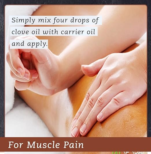 - Clove oil has potential benefits to embrace tired bodies in comforting warmth. Dilute 2-3 drops with a carrier oil or body lotion and massage onto tender areas.