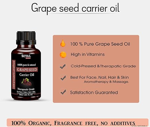 - SKIN: Grapeseed Oil is versatile oil works as a perfect moisturizer and gives your skin a nourished look. Grapeseed Oil perfectly balances the oil content in your skin soothing away dryness and gives you glowing skin