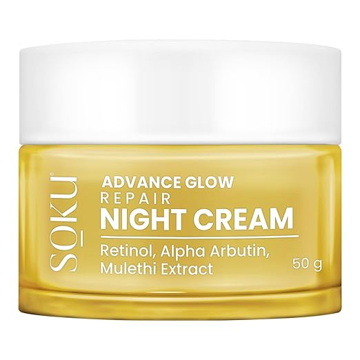 Description: UPLIFTS AND BRIGHTENS THE SKIN- Packed with the benefits of Retinol, Alpha Arbutin and Mulethi Extract, SOKU Glow Repair Night Cream, brightens and uplifts skin overnight for a lively and...