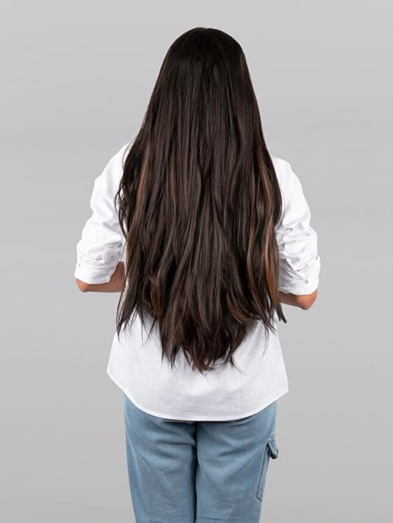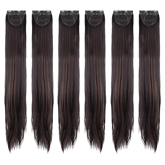 Streak Street Clip in 24 Straight Dark Brown Side Patches With Copper Highlights (6pcs Set)