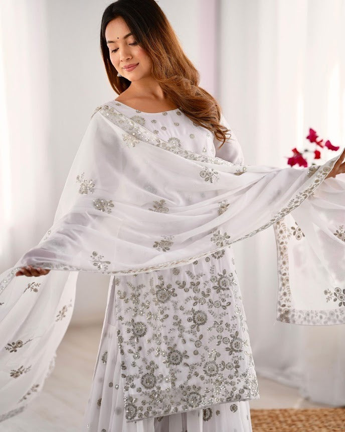 Ethereal Elegance in Ivory A Timeless Sharara Ensemble