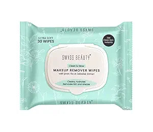 Swiss Beauty Clean & Glow Makeup Remover Wipes | With Green Tea And Calendula Extracts| Cleansing And Hydrating Facial Wipes| 30 Wipes