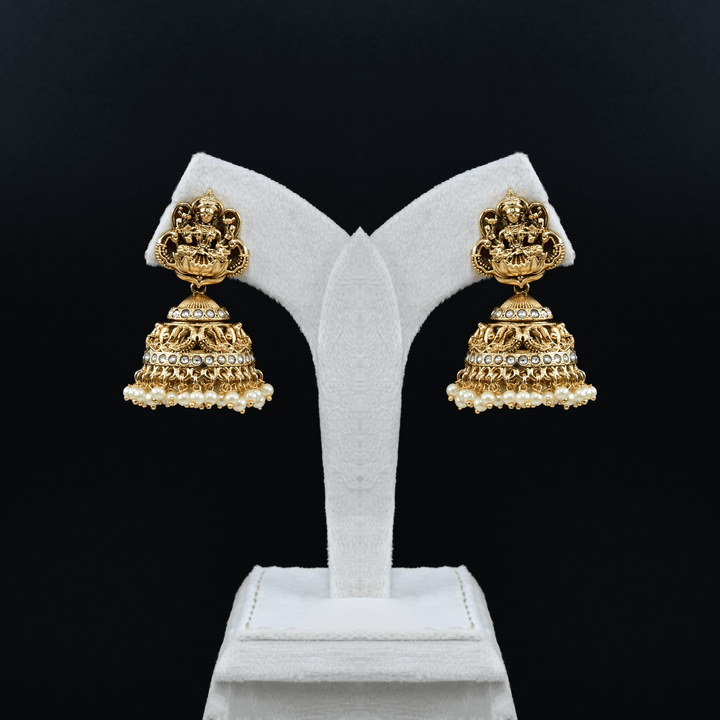 • Real Gold Look Handmade Exclusive Temple Nakshi Work With Lakshmi Ji Semi-Precious  Stones, Hanging Gold Beads, and Swarovski Pearls.