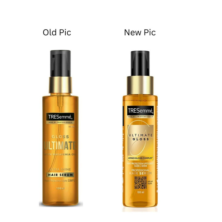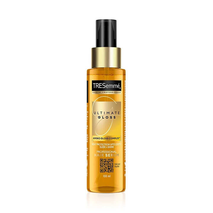 - Gloss Ultimate Ultra Shine Hair Serum Salon style hair, with super shiny finish Salon Quality TRESemme Gloss Ultimate Hair Serum is infused with Vitamin E and a blend of 3 powerful oils nourishing Coconut oil, conditioning Macadamia Oil and moisturizing Sunflower Seed Oil provides glossy shine and deep nourishment to hair.
